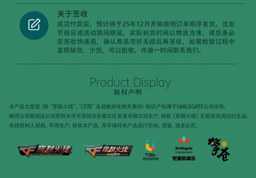 3、关于发货:由于产品设计及生产存在不确定性,我们将在收取尾款时公示具体发货时间,如有变动将会另作补充说明。