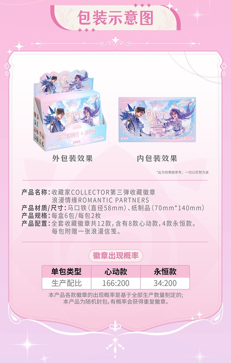 收藏徽章盲盒单包 第三弹浪漫情缘 不凡玩品x王者荣耀