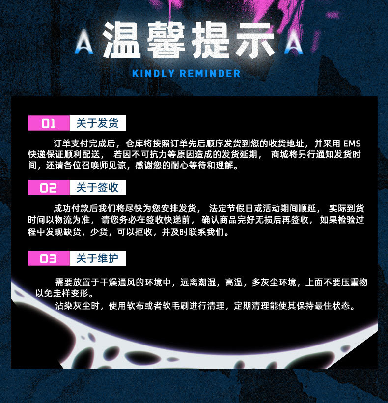 3、关于发货:由于产品设计及生产存在不确定性,我们将在收取尾款时公示具体发货时间,如有变动将会另作补充说明。