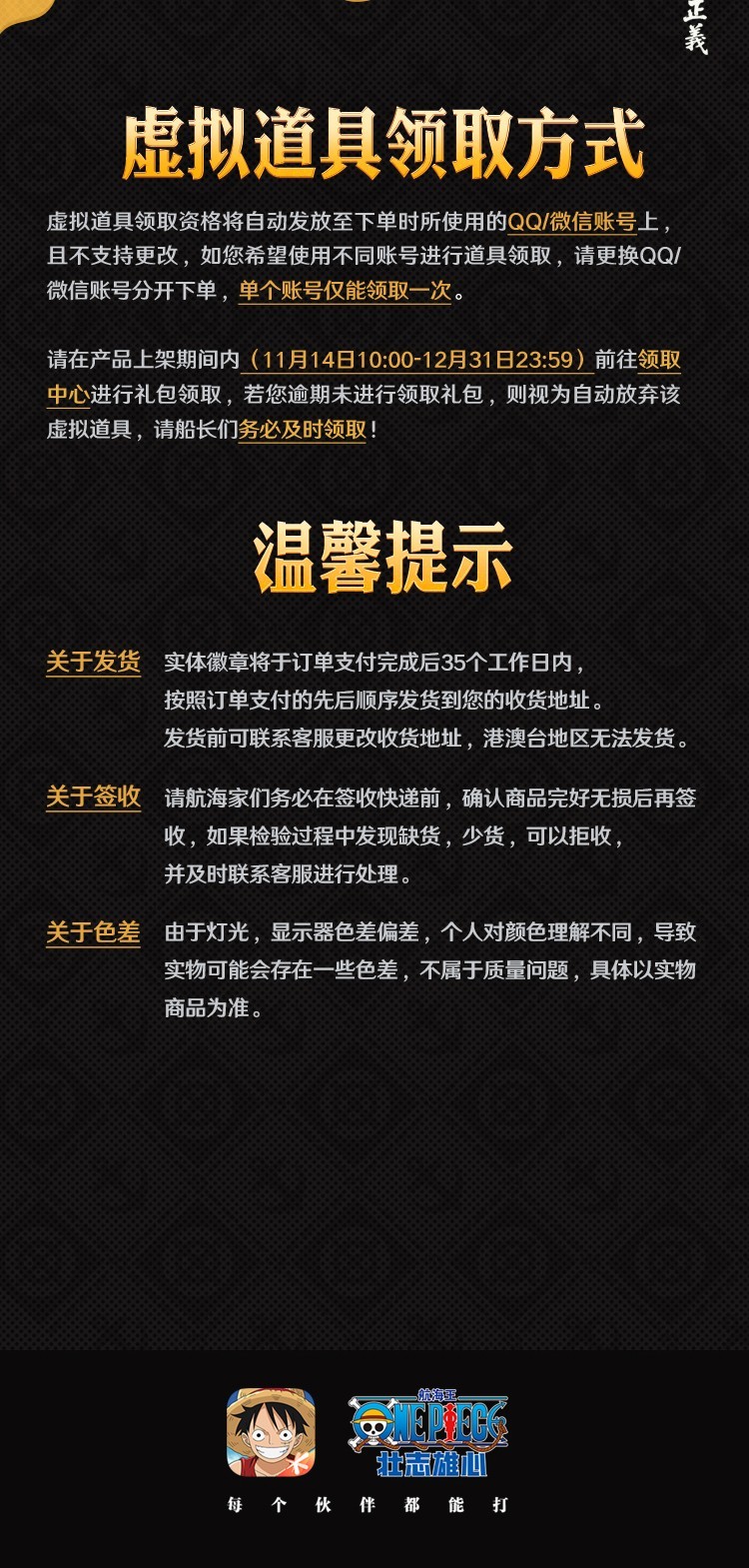 【礼包内附赠实体徽章为预售产品,将于订单支付后35个工作日内按照订单的先后顺序发货】
