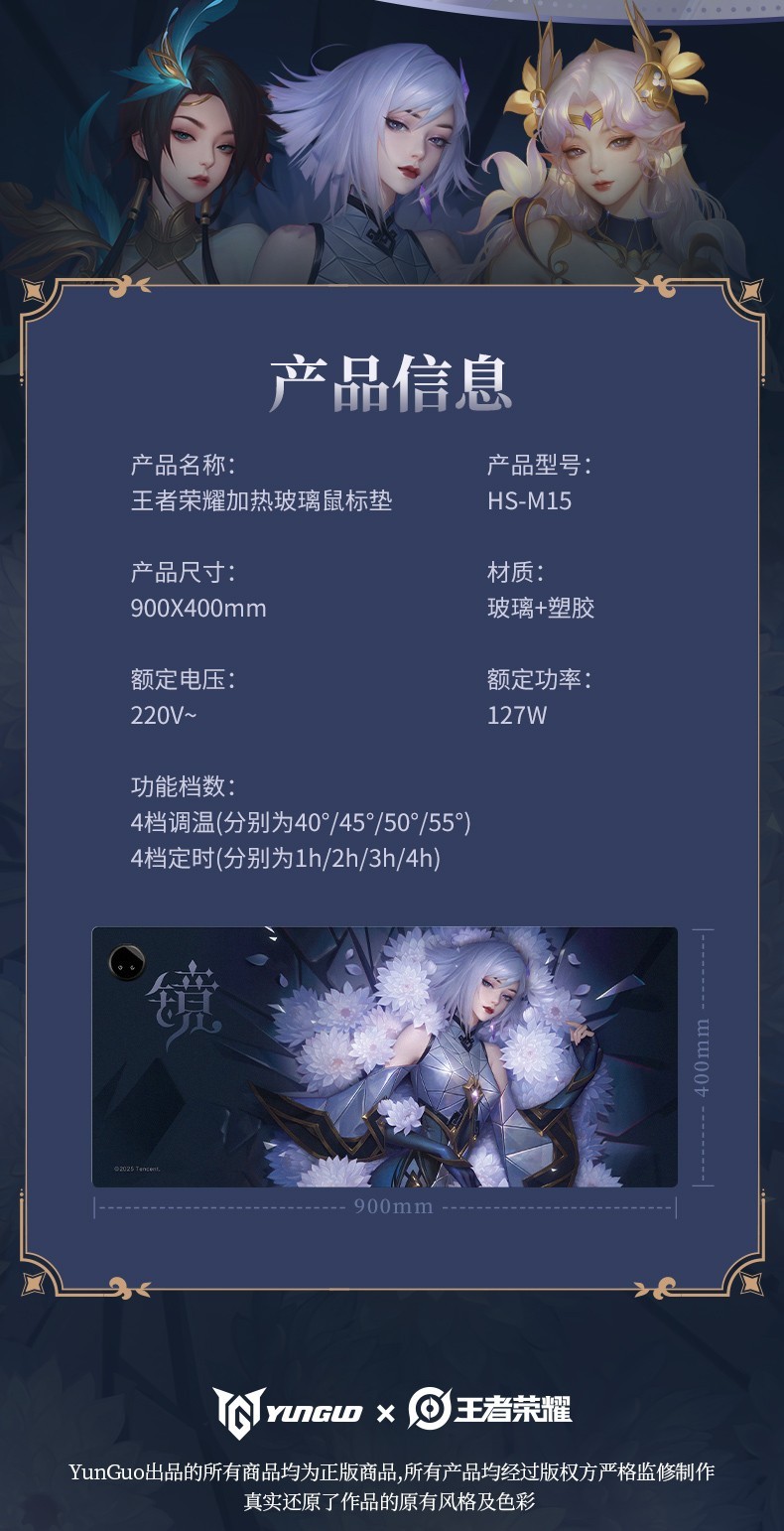 加热玻璃鼠标垫(多款可选)YUNGUO x 王者荣耀