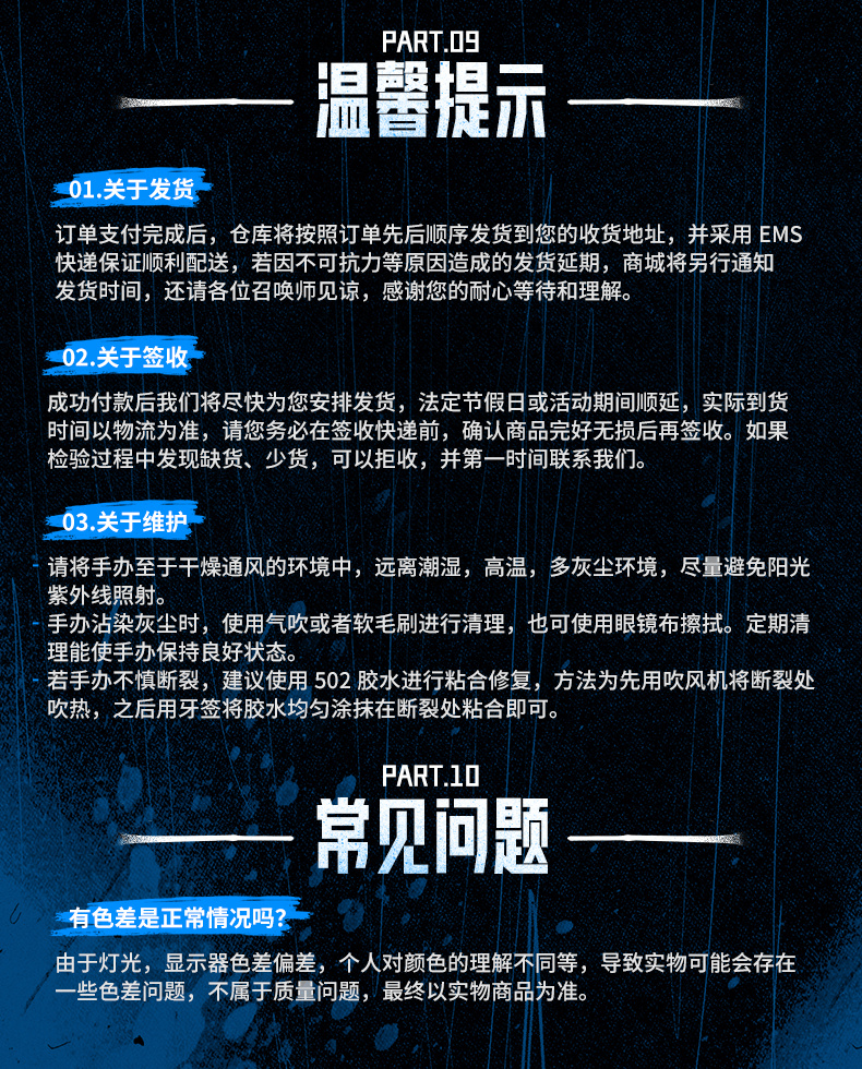 4、发货时间将在尾款页面进行提示,如有变动将另作补充说明。