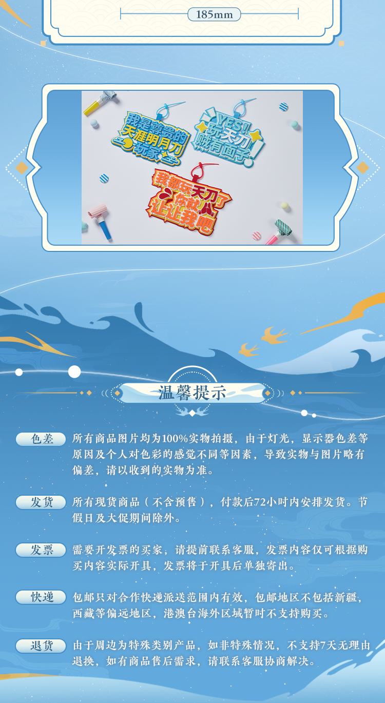 4、发货时间将在尾款页面进行提示,如有变动将另作补充说明。